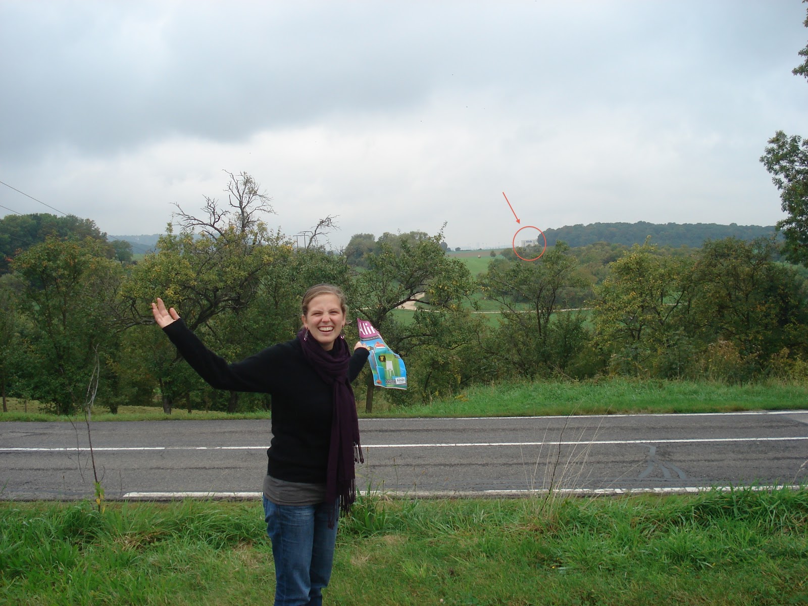 In any case, what a few weeks it’s been. Claire, my friend from Kalamazoo who studied abroad with me in Strasbourg, arrived last week and we’ve had many (mis)adventures already. Put the two of us together and something is bound to go awry. We are an idiot. Take, for example, our search for furnishings. It’s a long story that I will regale you with in detail some other time perhaps, but in a nutshell—we took the bus out to a suburb of Nancy, looking for the cheap furniture store Alinéa, which, according to the map, was supposed to be very close to the bus stop at which we arrived. However, after a few miles’ walk out into the middle of cow country, it was still nowhere to be found. We were getting ready to turn around and head back, when I spotted the store. “There it is!” I shouted.